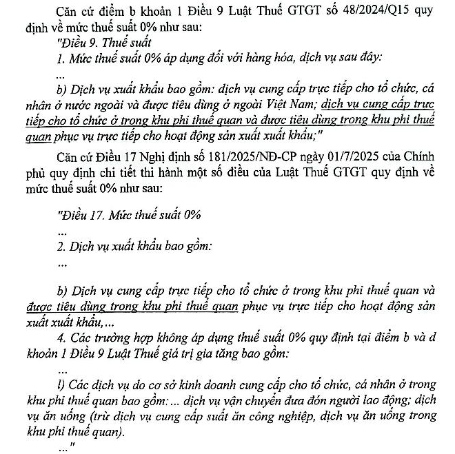 Gần đây, công ty nhận được hướng dẫn không thống nhất từ các cơ quan thuế địa phương về việc áp dụng mức thuế suất GTGT 0% đối với dịch vụ vận chuyển cung cấp cho DNCX.