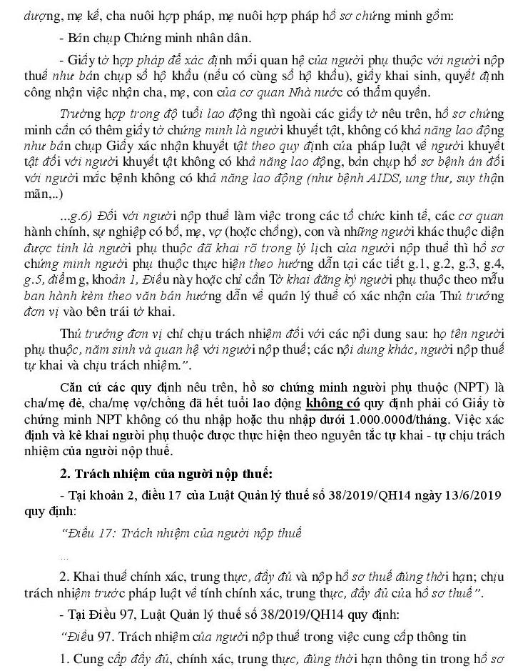Giấy tờ chứng minh người phụ thuộc không có thu nhập hoặc thu nhập dưới 1.000.000đ/tháng